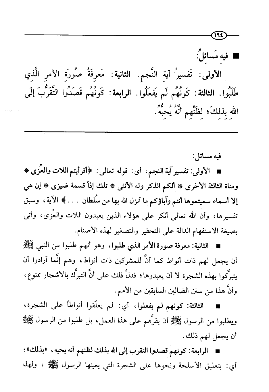 الثامنة: الأمر الكبير وهو المقصود أنه أخبر أن طلبهم كطلب بني إسرائيل لما قالوا لموسى: اجعل لنا إلها. التاسعة: أن نفي هذا من معنى (لا إله إلا الله) مع دقته وخفائه على أولئك. العاشرة: أنه حلف على الفتيا، وهو لا يحلف إلا لمصلحة.