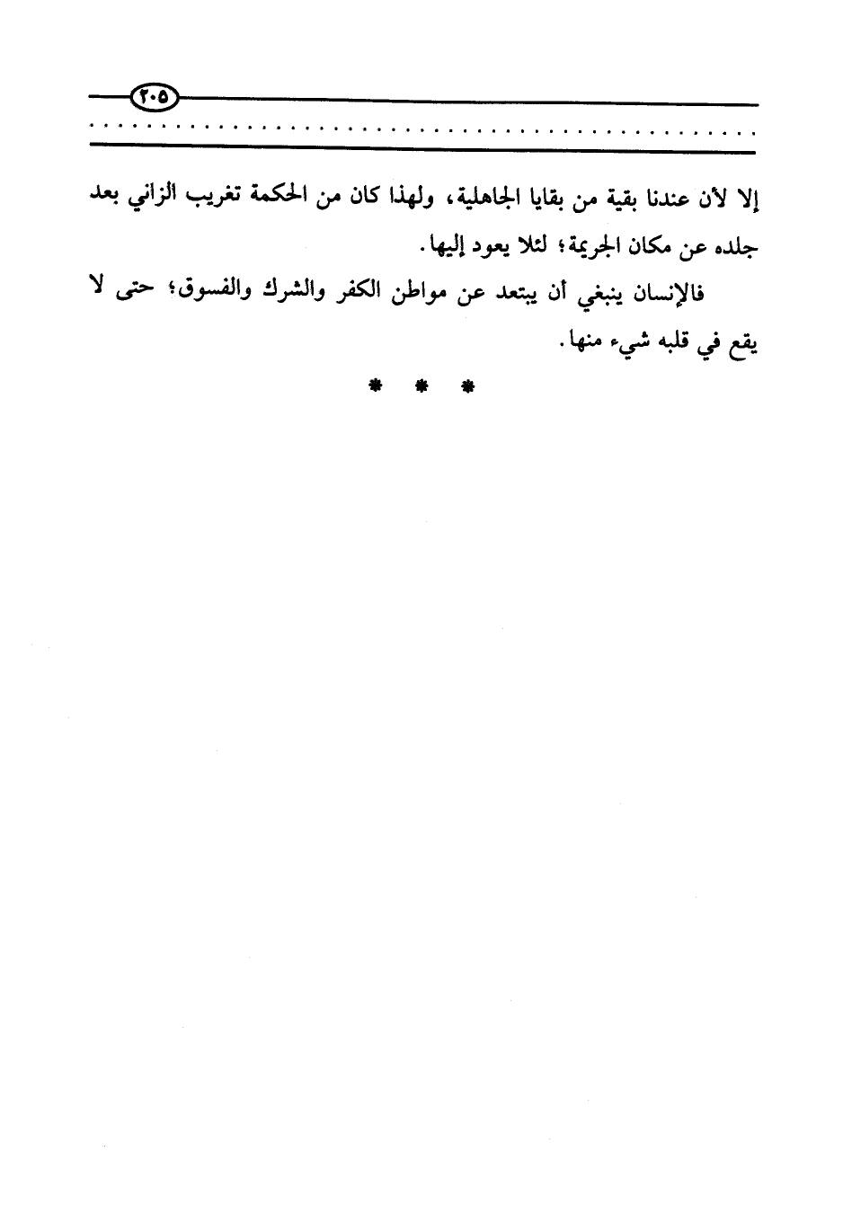 إلا لأن عندنا بقية من بقايا الجاهلية، ولهذا كان من الحكمة تغريب الزاني بعد جلده عن مكان الجريمة؛ لئلا يعود إليها.