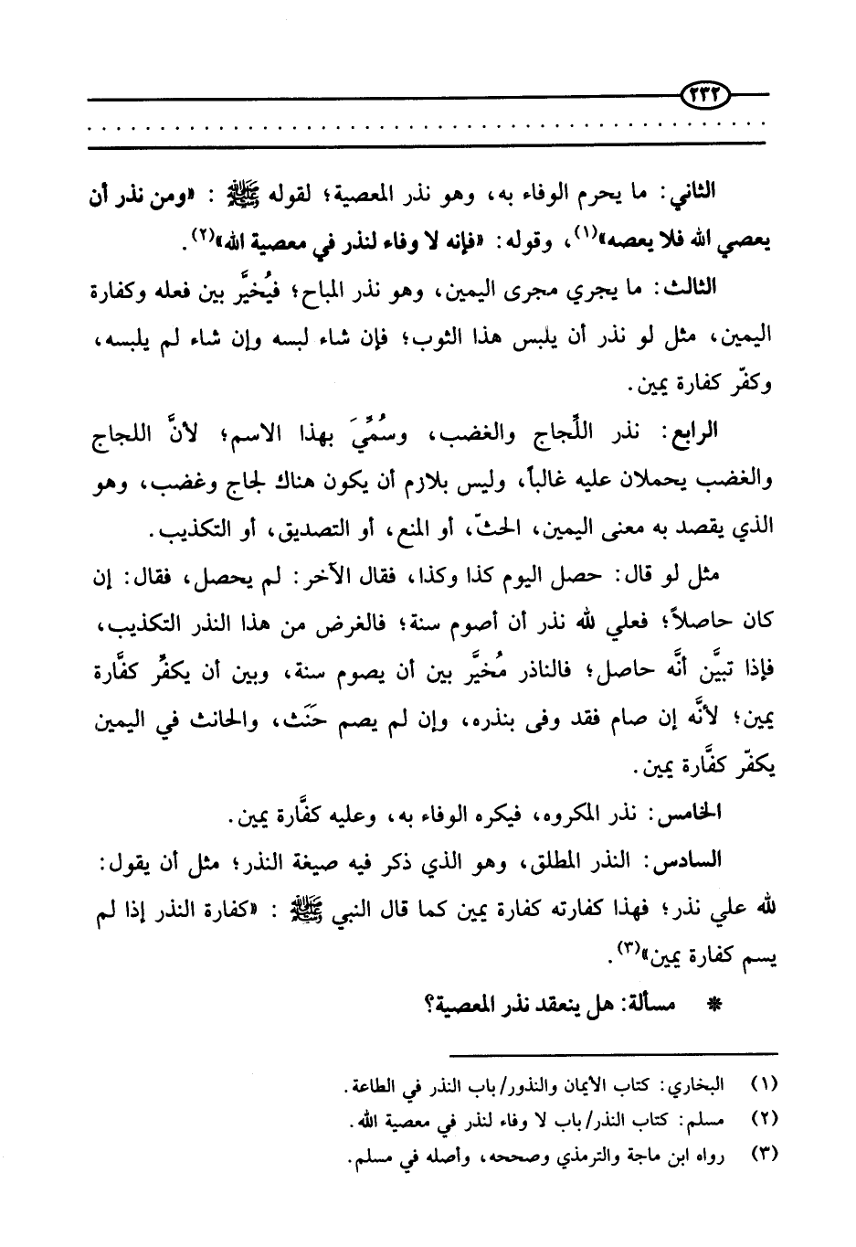 مسألة هل ينعقد نذر المعصية؟