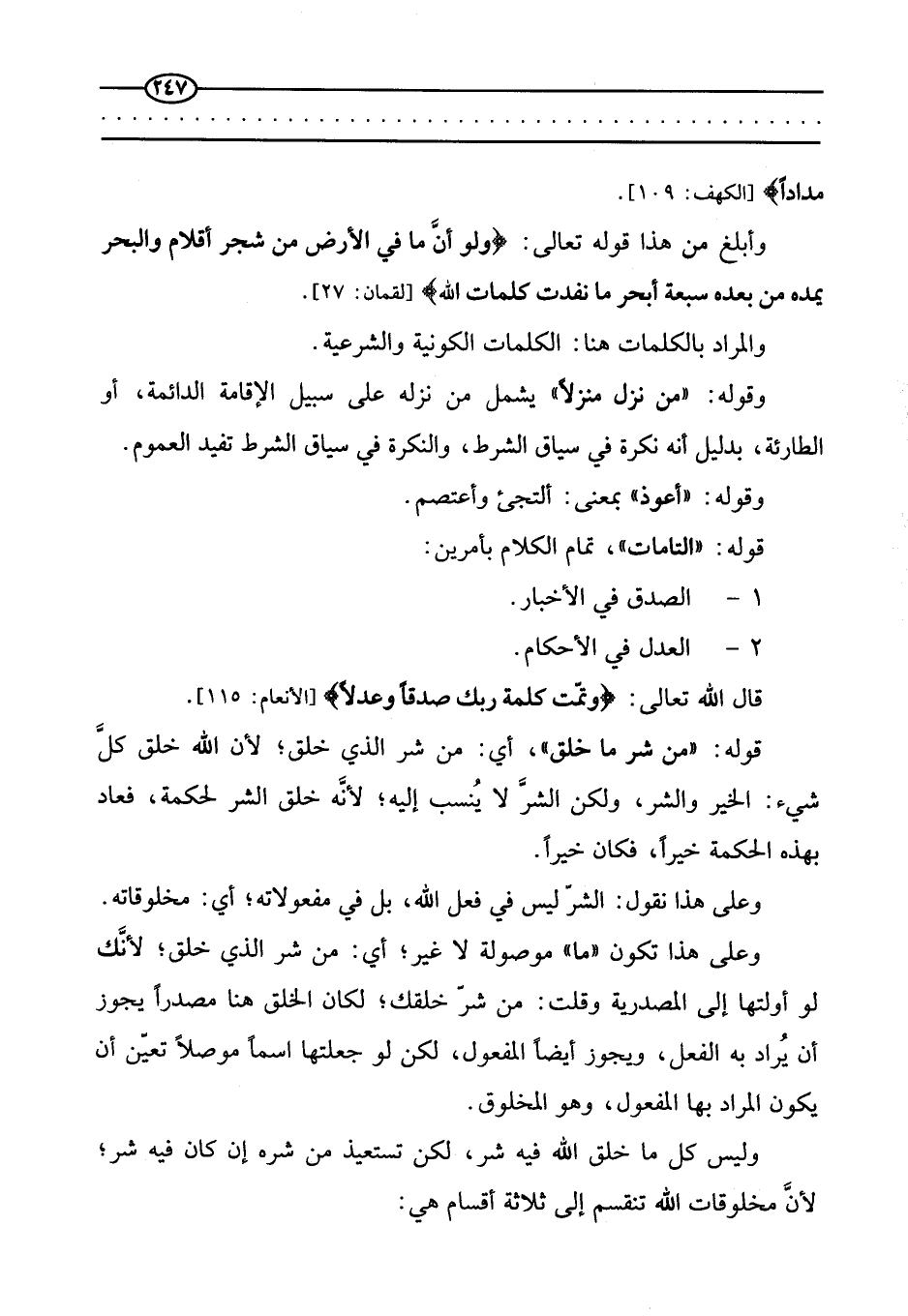 وليس كل ما خلق الله فيه شر، لكن تستعيذ من شره إن كان فيه شر؛ لأن مخلوقات الله تنقسم إلى ثلاثة أقسام هي: