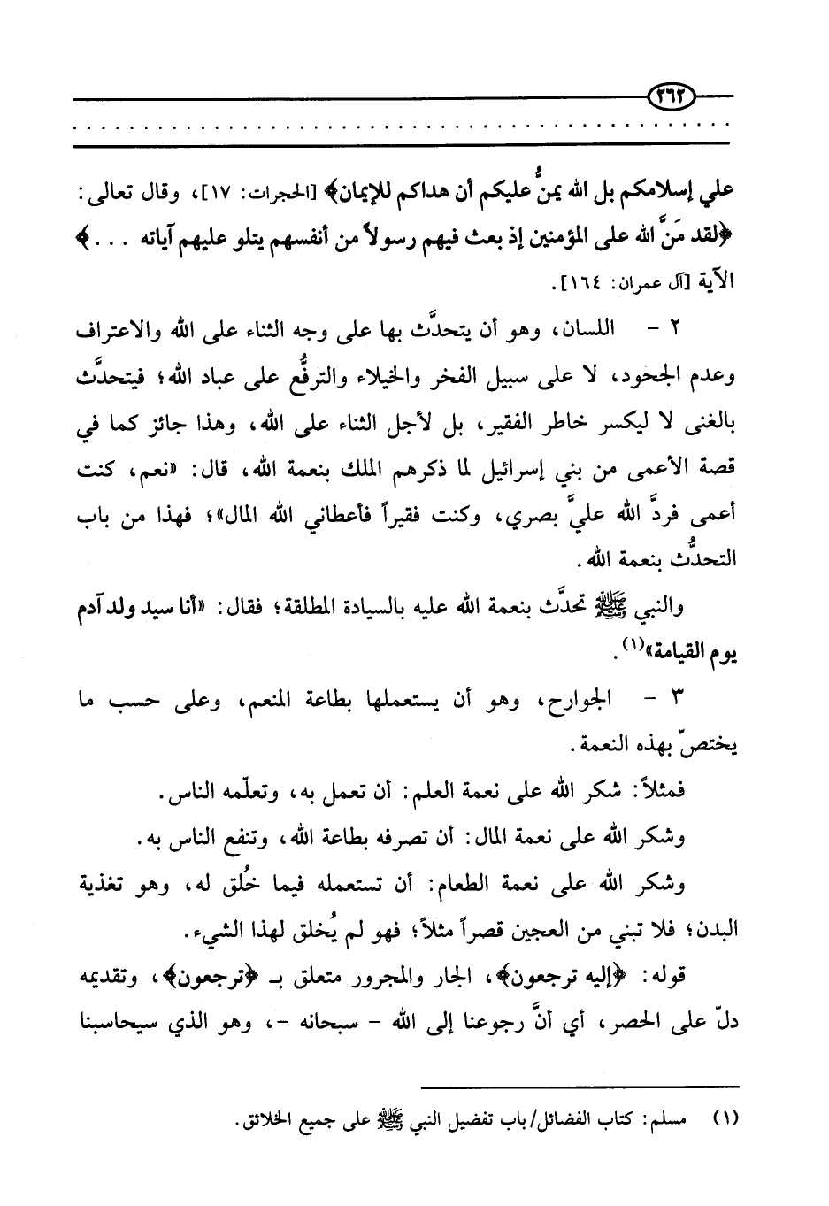 والنبي صَلَّى اللَّهُ عَلَيْهِ وَسَلَّمَ تحدث بنعمة الله عليه بالسيادة المطلقة: فقال: «أنا سيد ولد آدم يوم القيامة» .