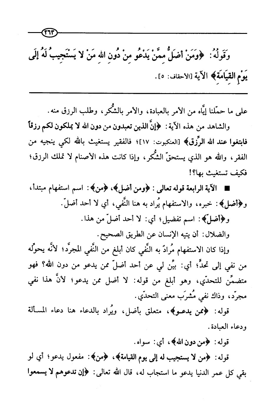 * الآية الرابعة قوله تعالى: {وَمَنْ أَضَلُّ} ، (من) : اسم استفهام مبتدأ، و (أضل) : خبره والاستفهام يراد به هنا النفي، أي لا أحل أضل.