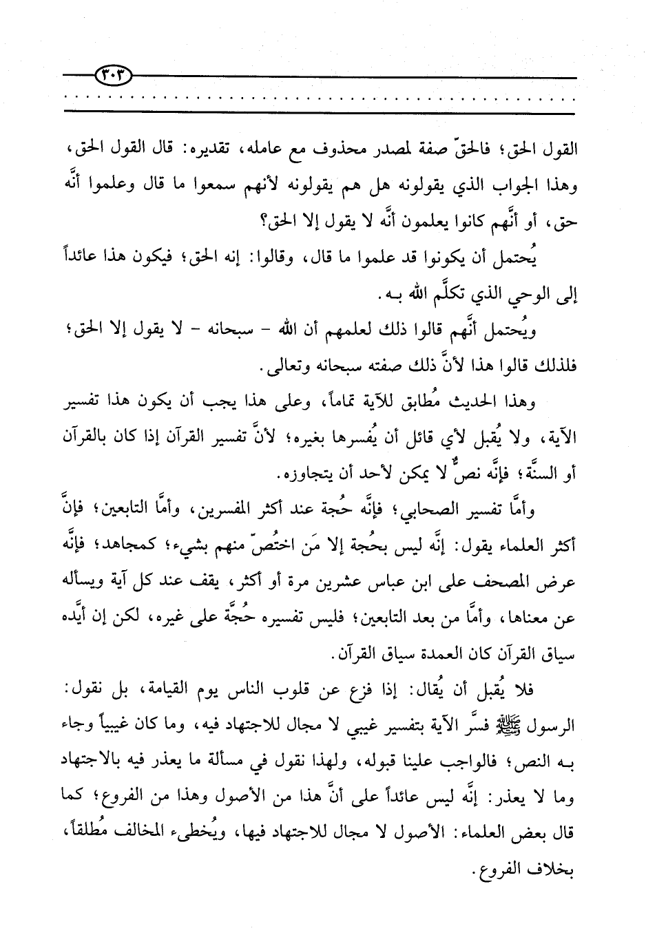 فلا يقبل أن يقال: إذا فزع عن قلوب الناس يوم القيامة، بل نقول: الرسول صَلَّى اللَّهُ عَلَيْهِ وَسَلَّمَ فسر الآية بتفسير غيبي لا مجال للاجتهاد فيه، وما كان غيبيا وجاء به النص؛ فالواجب علينا قبوله، ولهذا نقول في مسألة ما يعذر فيه بالاجتهاد وما لا يعذر: إنه ليس عائدا على أن هذا من الأصول، وهذا من الفروع؛ كما قال بعض العلماء: الأصول لا مجال للاجتهاد فيها، ويخطئ المخالف مطلقا، بخلاف الفروع.