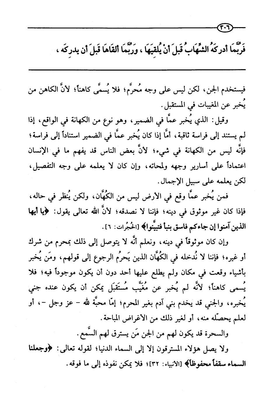 وإن كان موثوقا في دينه، ونعلم أنه لا يتوصل إلى ذلك بمحرم من شرك أو غيره؛ فإننا لا ندخله في الكهان الذين يحرم الرجوع إلى قولهم، ومن يخبر بأشياء وقعت في مكان ولم يطلع عليها أحد دون أن يكون موجودا فيه؛ فلا يسمى كاهنا؛ لأنه لم يخبر عن مغيب مستقبل يمكن أن يكون عنده جني يخبره، والجني قد يخدم بني آدم بغير المحرم؛ إما محبة لله -عز وجل-، أو لعلم يحصله منه، أو لغير ذلك من الأغراض المباحة.