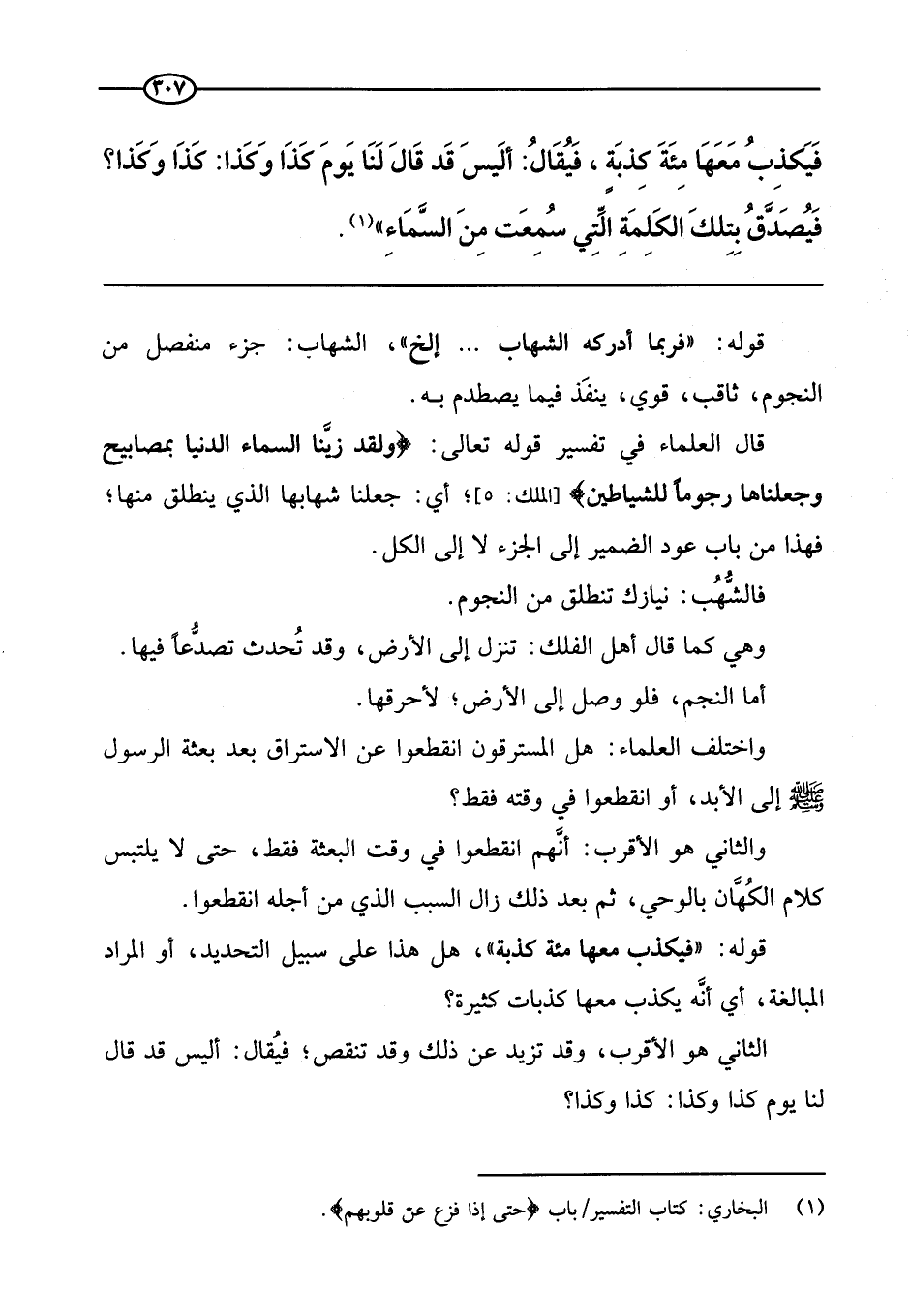 «فيكذب معها مائة كذبة، فيقال: أليس قد قال لنا يوم كذا وكذا: كذا وكذا؟ فيصدق بتلك الكلمة التي سمعت من السماء»