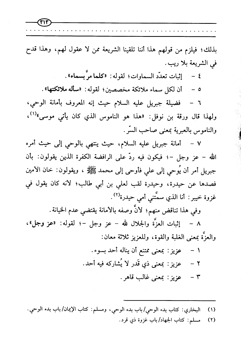 7 - أمانة جبريل عليه السلام، حيث ينتهي بالوحي إلى حيث أمره الله -عز وجل-؛ فيكون فيه رد على الرافضة الكفرة الذين يقولون: بأن جبريل أمر أن يوحي إلى علي فأوحى إلى محمد -صَلَّى اللَّهُ عَلَيْهِ وَسَلَّمَ-، ويقولون:
