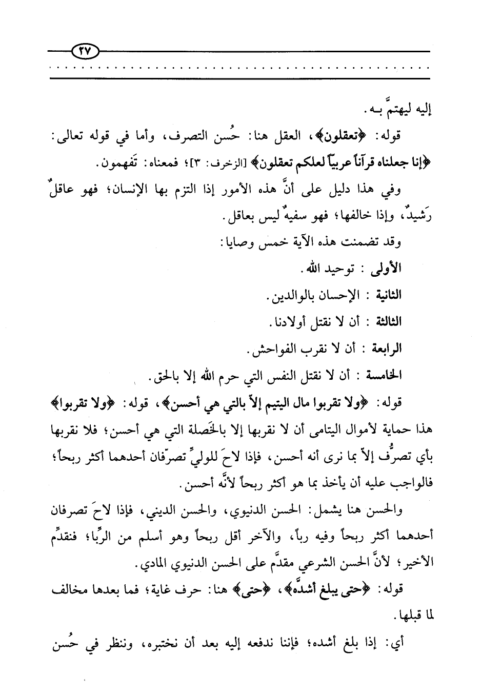 الثاني: أنه لا شيء محذوف، لكن هنا تقديم وتأخير، وتقديره: فألا أبشر؟ فالجملة معطوفة على ما سبق، وموضع الفاء سابق على الهمزة؛ فالأصل: فألا أبشر الناس؟ لكن لما كان مثل هذا التركيب ركيكا، وهمزة الاستفهام لها الصدارة؛ قدمت على حرف العطف، ومثل ذلك قوله تعالى: {أَفَلَا يَنْظُرُونَ إِلَى الْإِبِلِ كَيْفَ خُلِقَتْ} [الغاشية: 17] ، وقوله تعالى: {أَفَلَا يُبْصِرُونَ} [السجدة: 27] ، وقوله تعالى: {أَفَلَمْ يَسِيرُوا فِي الْأَرْضِ} [الحج: 46] .