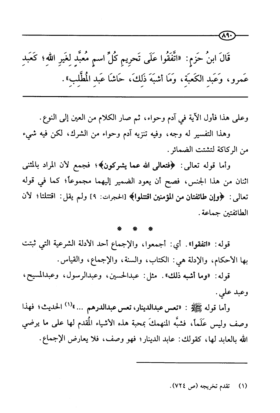 قال ابن حزم: " اتفقوا على تحريم كل اسم معبد لغير الله، كعبد عمرو وعبد الكعبة وما أشبه ذلك حاشا عبد المطلب ".