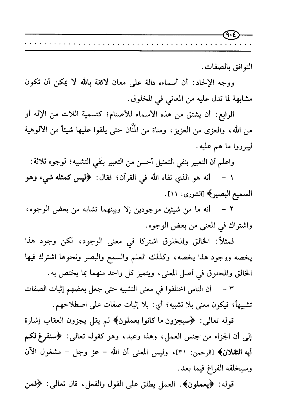 1 - أنه هو الذي نفاه الله في القرآن، فقال: {لَيْسَ كَمِثْلِهِ شَيْءٌ وَهُوَ السَّمِيعُ الْبَصِيرُ} [الشورى: 11] .