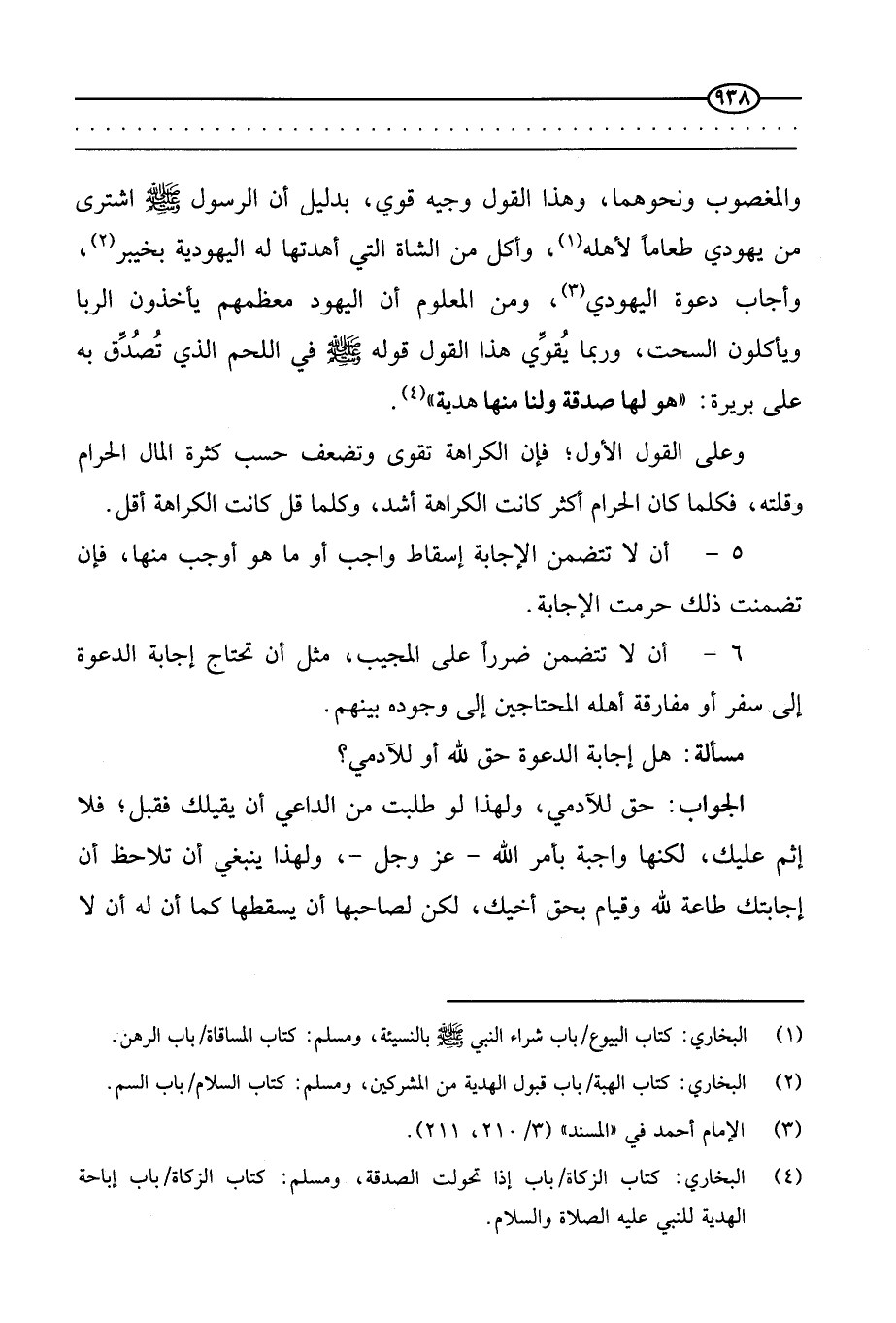 5. أن لا تتضمن الإجابة إسقاط واجب أو ما هو أوجب منها، فإن تضمنت ذلك حرمت الإجابة.