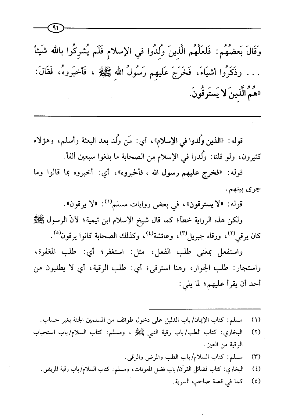 المسألة الأولى: معرفة مراتب الناس في التوحيد، وهذه مأخوذة من قوله: «يدخلون الجنة بغير حساب ولا عذاب» . ثم قال: «هم الذين لا يسترقون ولا يكتوون، ولا يتطيرون» .