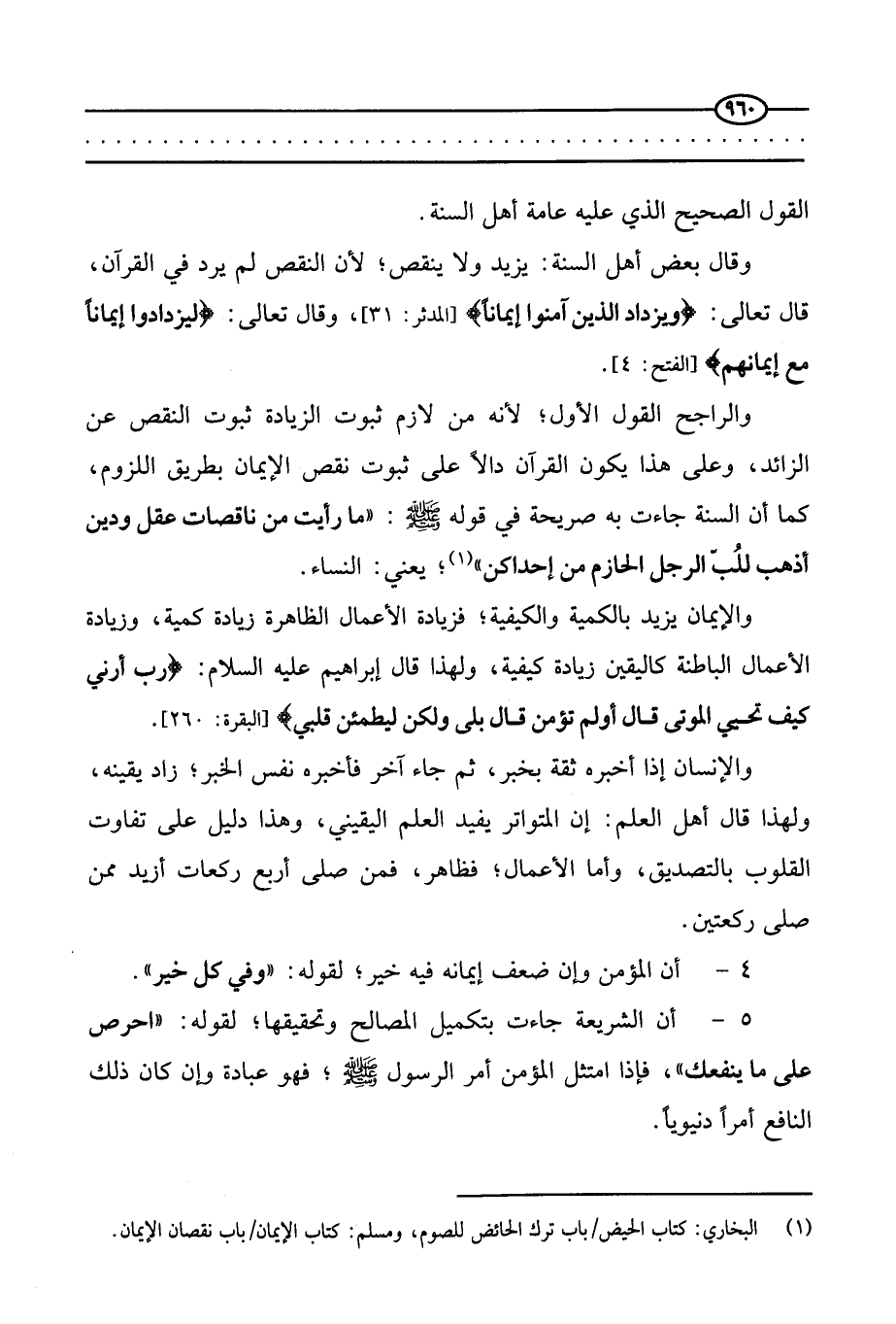 والراجح القول الأول؛ لأنه من لازم ثبوت الزيادة ثبوت النقص عن الزائد، وعلى هذا يكون القرآن دالا على ثبوت نقص الإيمان بطريق اللزوم، كما أن السنة جاءت به صريحة في قوله - صَلَّى اللَّهُ عَلَيْهِ وَسَلَّمَ -: «ما رأيت من ناقصات عقل ودين أذهب للب الرجل الحازم من إحداكن» ، يعني: النساء.