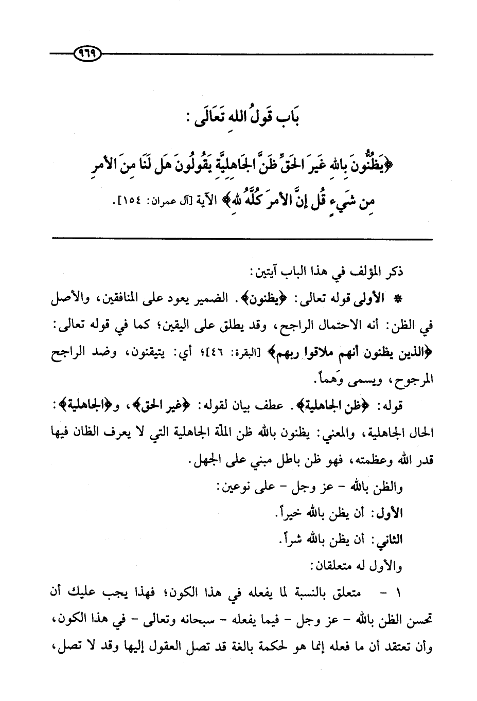 {يَظُنُّونَ بِاللَّهِ غَيْرَ الْحَقِّ ظَنَّ الْجَاهِلِيَّةِ يَقُولُونَ هَلْ لَنَا مِنَ الْأَمْرِ مِنْ شَيْءٍ قُلْ إِنَّ الْأَمْرَ كُلَّهُ لِلَّهِ} [آل عمران: من الآية154] .