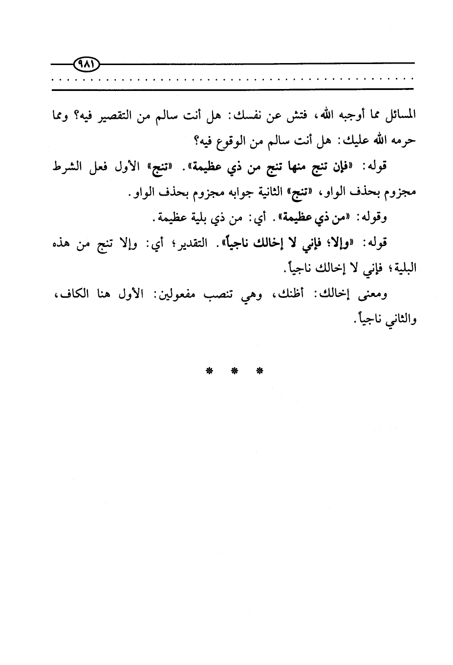 قوله: (فإن تنج منها تنج من ذي عظيمة) . (تنج) الأول فعل الشرط مجزوم بحذف الواو، (تنج) الثانية جوابه مجزوم بحذف الواو.