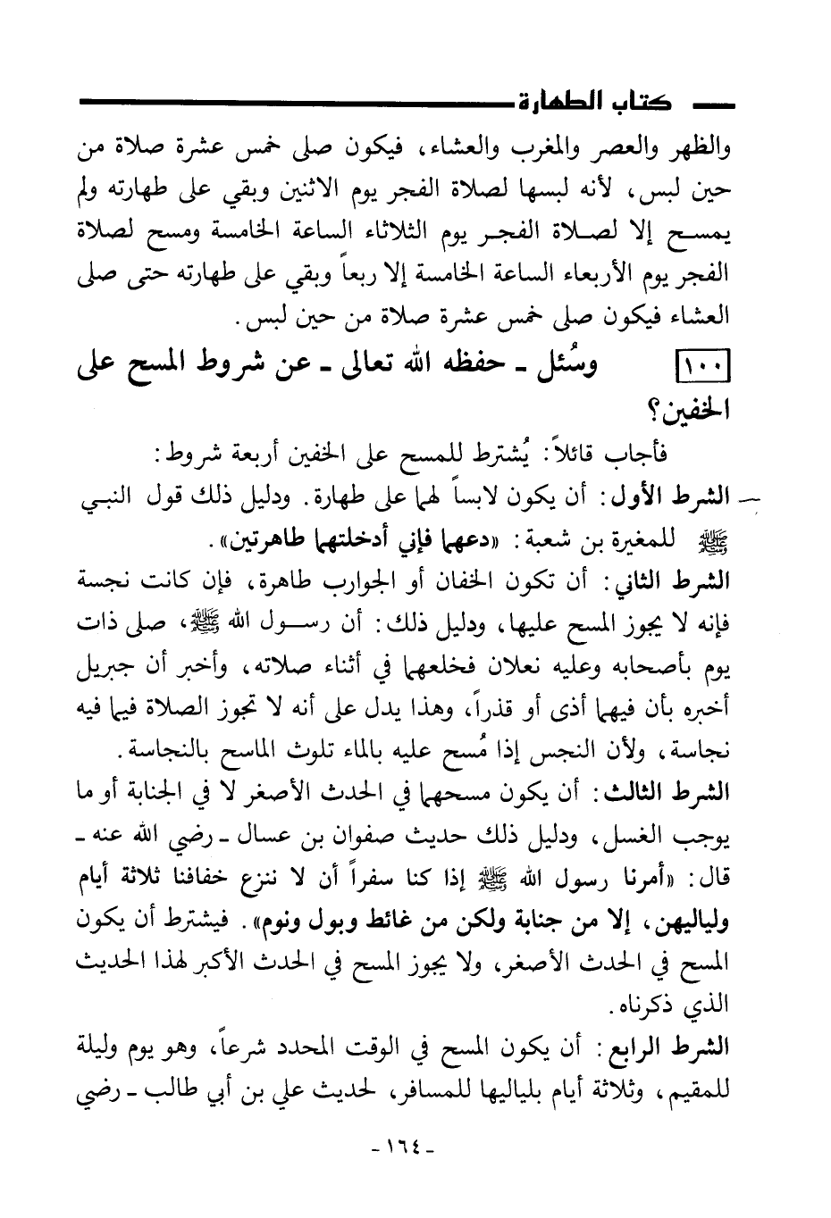 100) وسُئل - حفظه الله تعالى - عن شروط المسح على الخفين؟