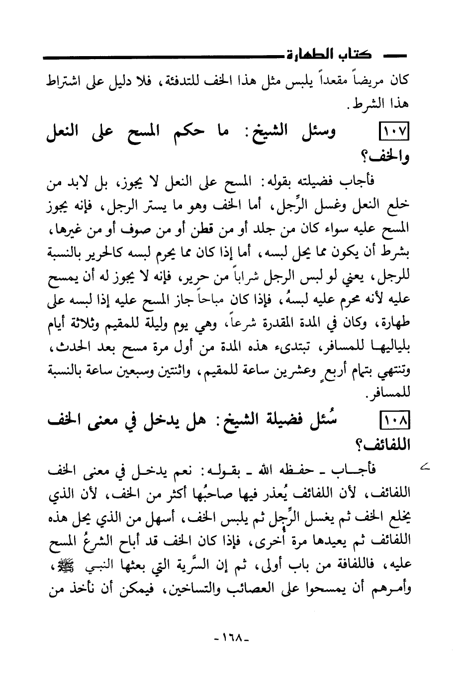 108) سُئل فضيلة الشيخ: هل يدخل في معنى الخف اللفائف؟
