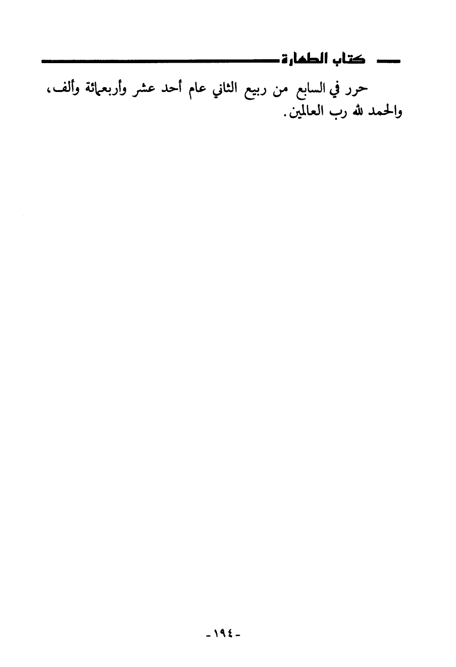 حرر في السابع من ربيع الثاني عام أحد عشر وأربعمائة وألف والحمد لله رب العالمين.