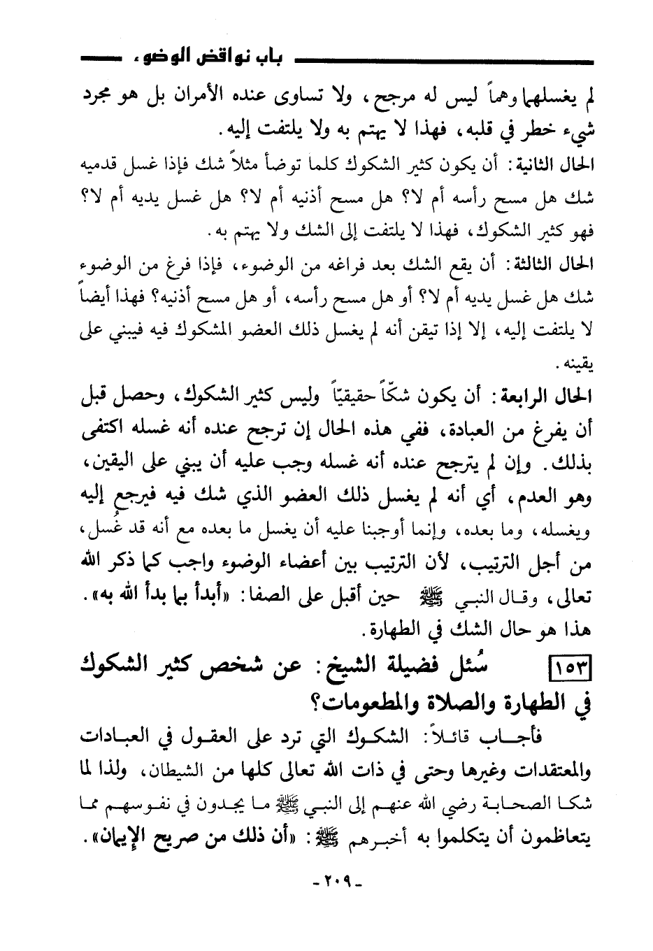 153) سُئل فضيلة الشيخ: عن شخص كثير الشكوك في الطهارة والصلاة والمطعومات؟