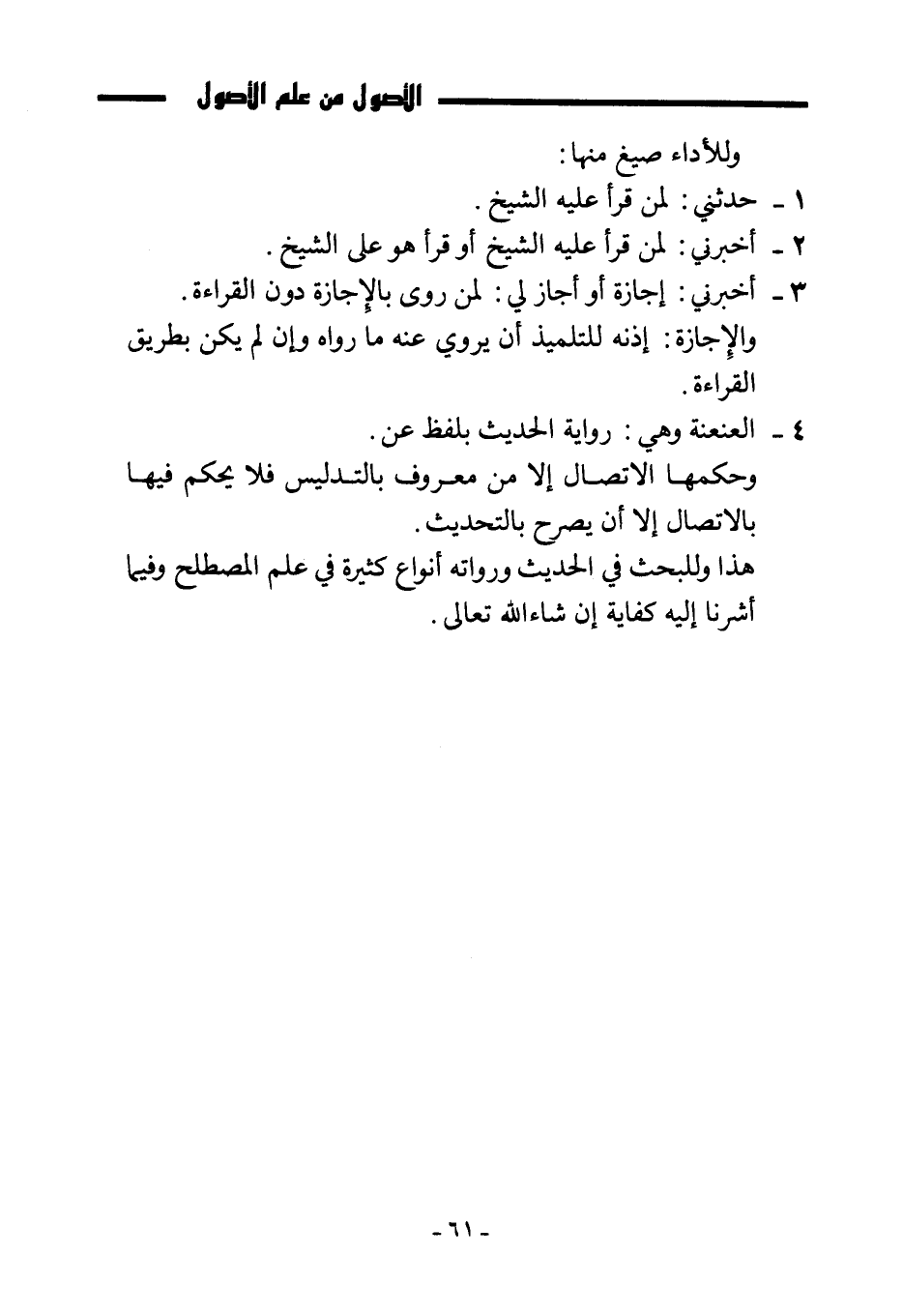 هذا وللبحث في الحديث ورواته أنواع كثيرة في علم المصطلح وفيماأشرنا إليه كفاية أن شاء الله تعالى.