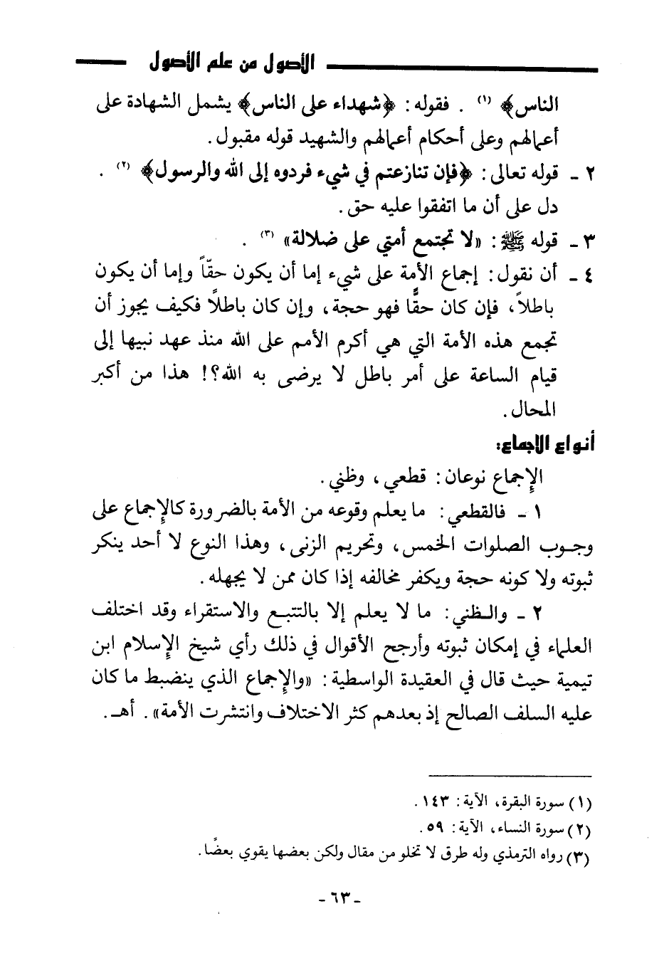 5- أن نقول: إجماع الأمة على شيء إما أن يكون حقّاً وإما أن يكون باطلاً، فإن كان حقّاً فهو حجة، وإن كان باطلاً فكيف يجوز أن تجمع هذه الأمة التي هي أكرم الأمم على الله منذ عهد نبيها إلى قيام الساعة على أمر باطل لا يرضى به الله؟ ! هذا من أكبر المحال.