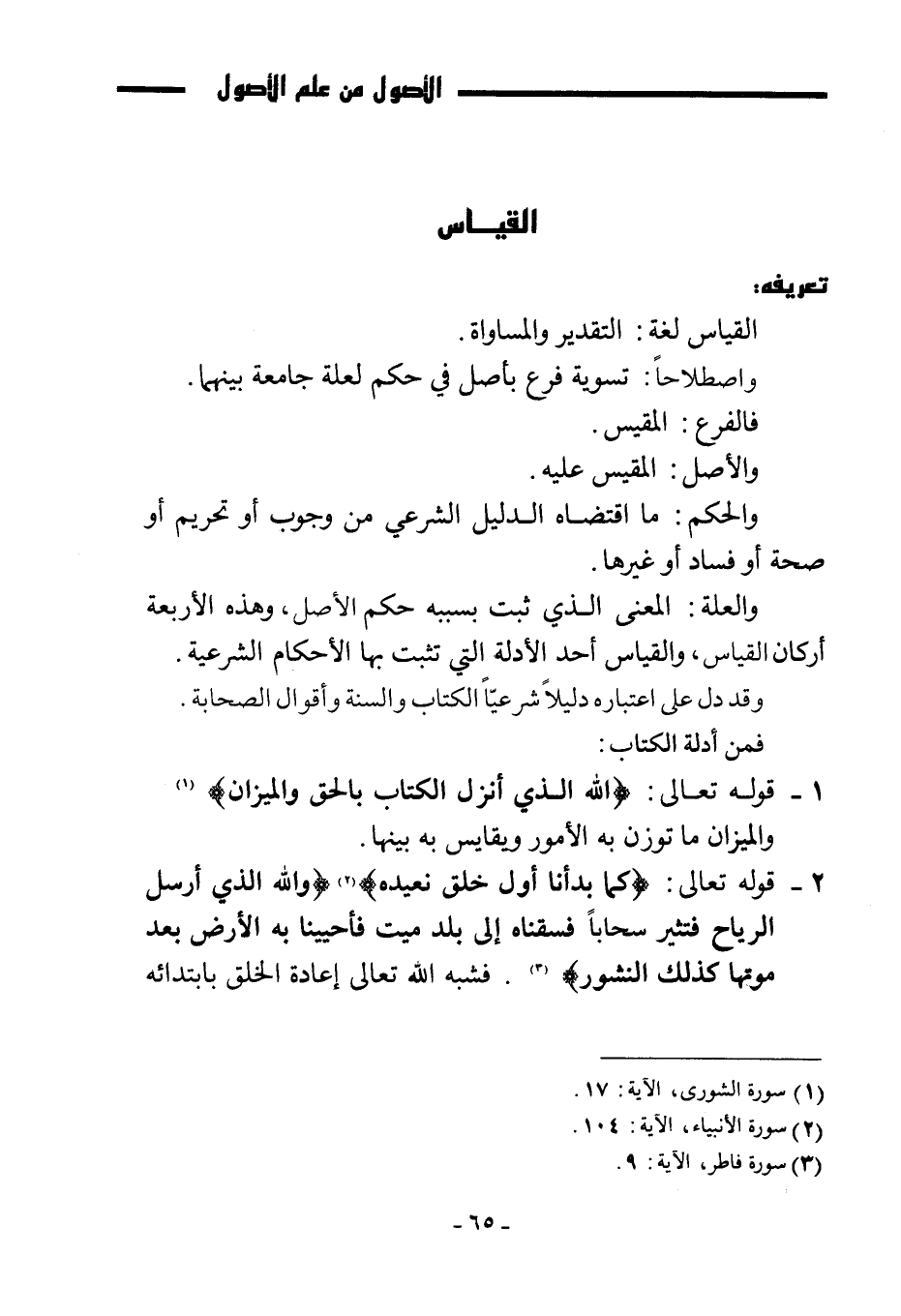 والعلة: المعنى الذي ثبت بسببه حكم الأصل، وهذه الأربعة أركان القياس، والقياس أحد الأدلة التي ثبت بها الأحكام الشرعية.