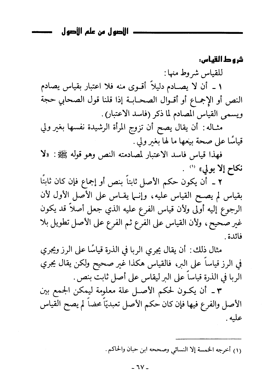 2- أن يكون حكم الأصل ثابتاً بنص أو إجماع فإن كان ثابتاً بقياس لم يصح القياس عليه، وإنما يقاس على الأصل الأول لأن الرجوع إليه أولى ولأن القياس على الفرع ثم الفرع على الأصل تطويل بلا فائدة.