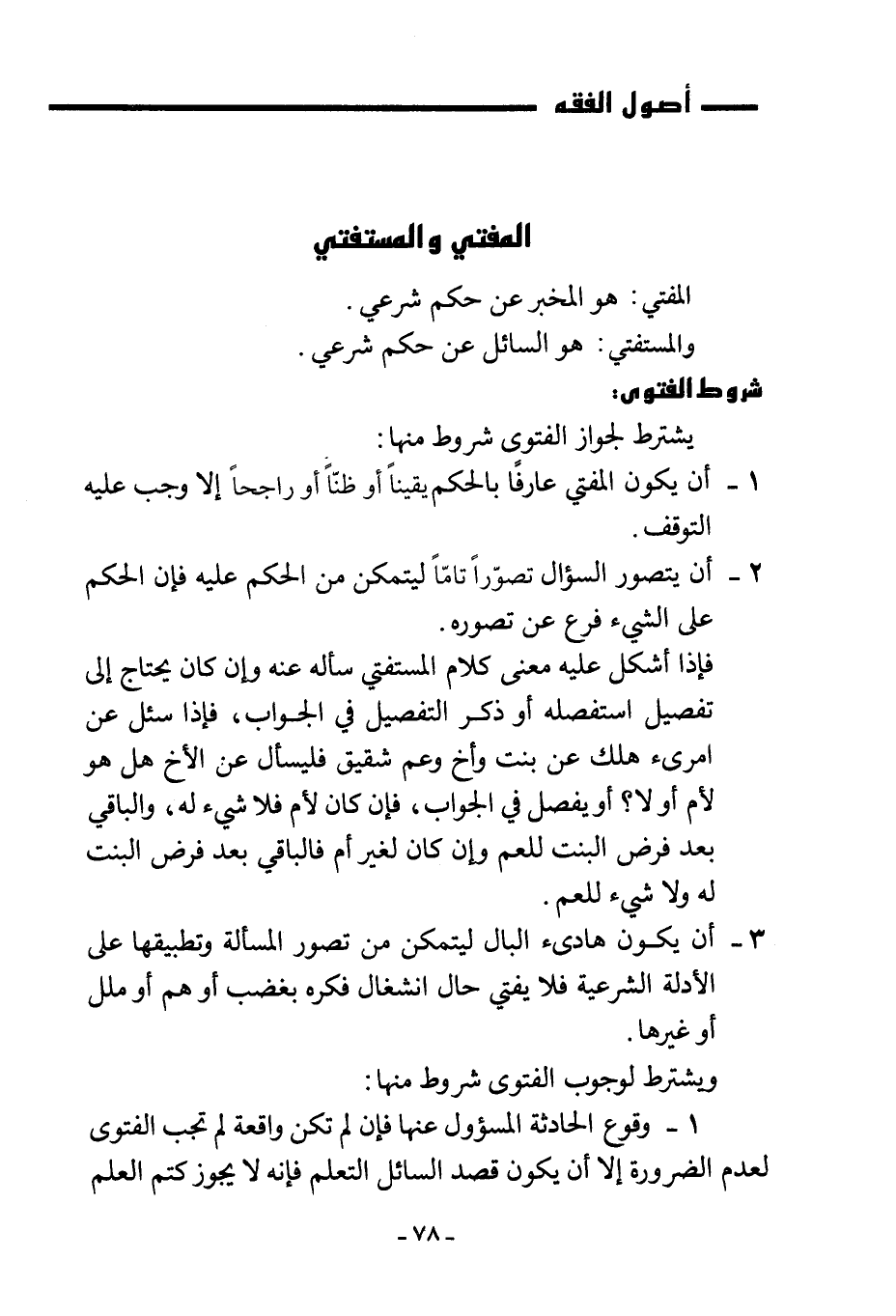 يشترط لجواز الفتوى شروط منها: