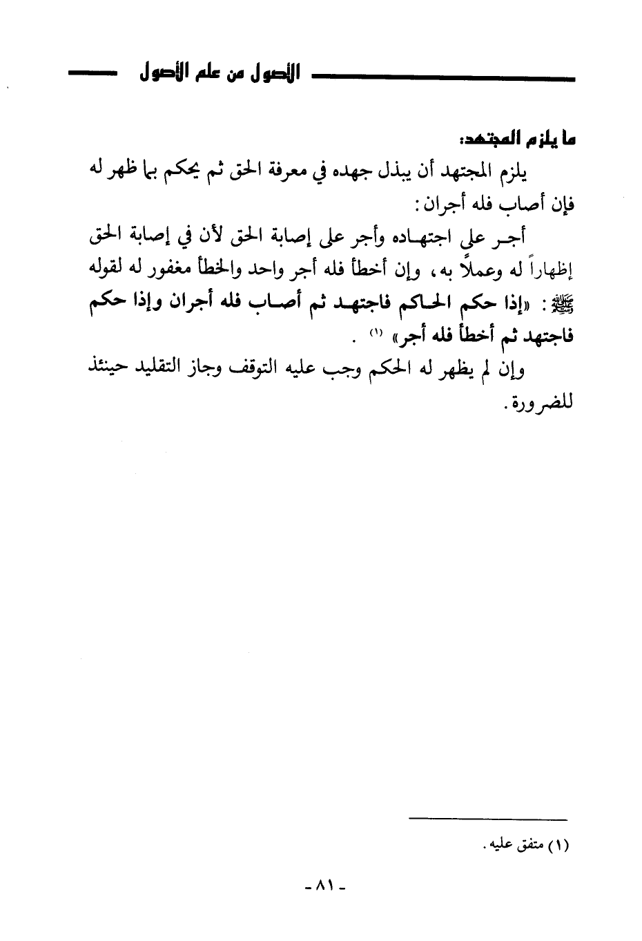 يلزم المجتهد أن يبذل جهده في معرفة الحق ثم يحكم بما ظهر له فإن أصاب فله أجران: