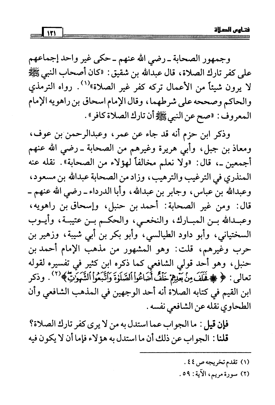 فإن قيل: ما الجواب عما استدل به من لا يرى كفر تارك الصلاة؟