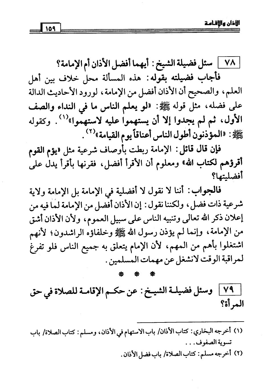 78) سئل فضيلة الشيخ: أيهما أفضل الأذان أم الإمامة؟