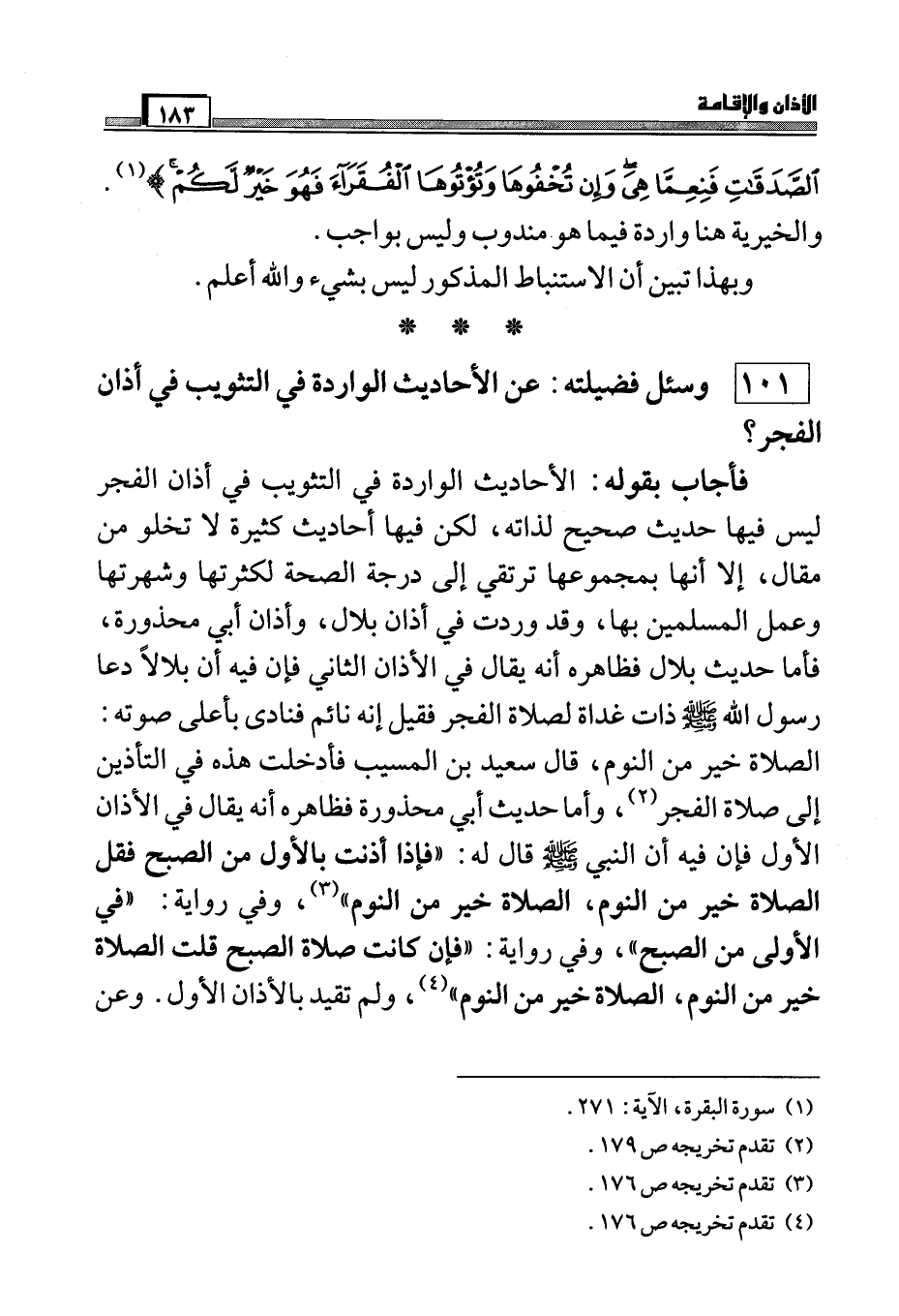 101) وسئل فضيلته: عن الأحاديث الواردة في التثويب في أذان الفجر؟