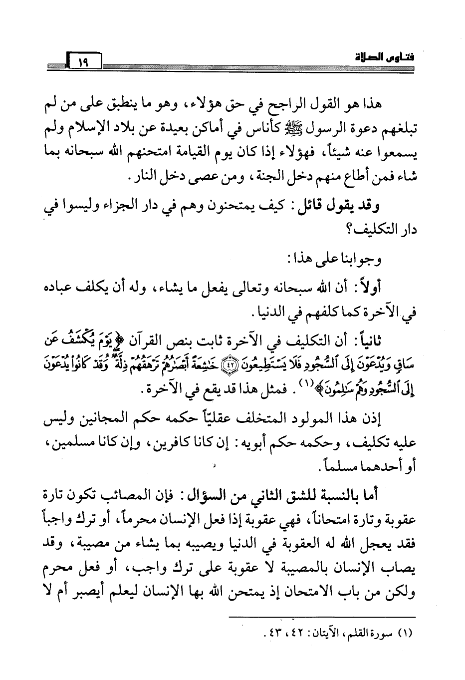 (¬1) سورة القلم، الآيتان: 42، 43.