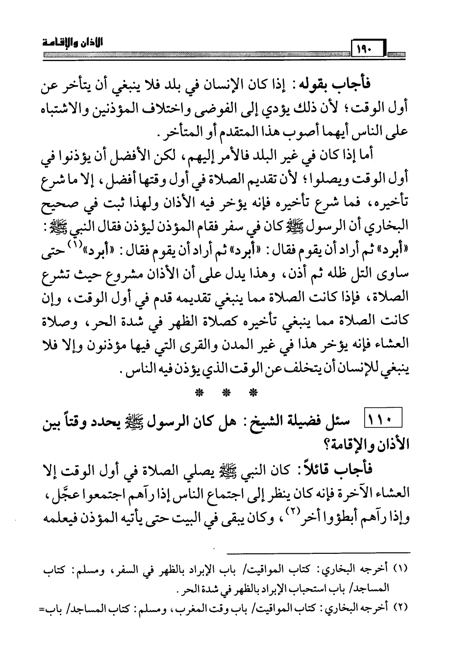 110) سئل فضيلة الشيخ: هل كان الرسول صَلَّى اللَّهُ عَلَيْهِ وَسَلَّمَ يحدد وقتاً بين الأذان والإقامة؟