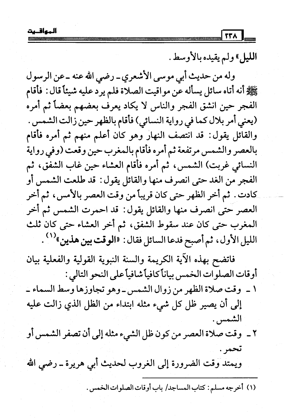 (¬1) أخرجه مسلم: كتاب المساجد /باب أوقات الصلوات الخمس.