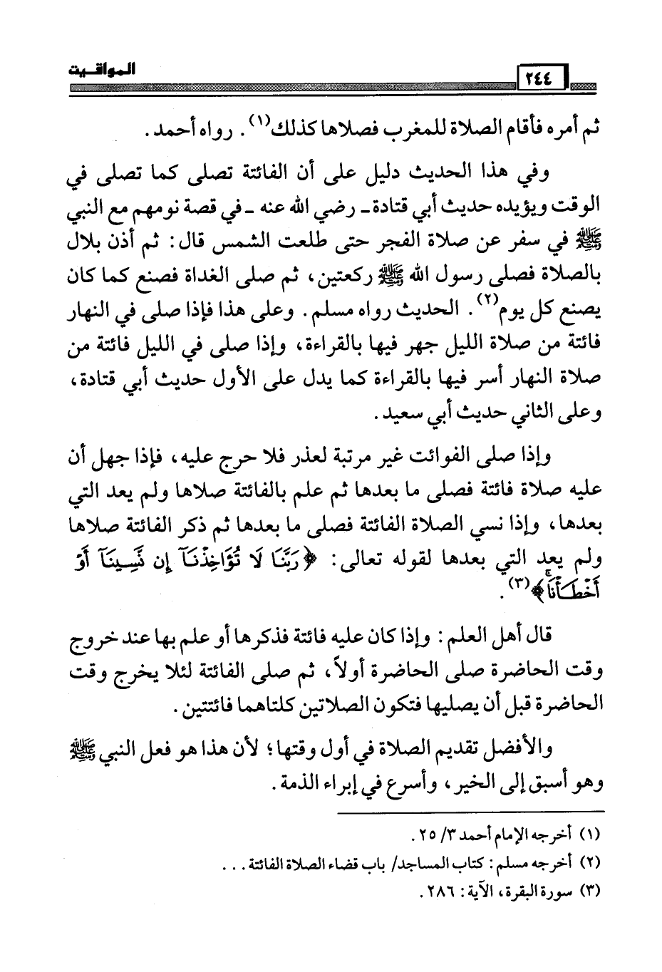 (¬2) أخرجه مسلم: كتاب المساجد /باب قضاء الصلاة الفائتة ...