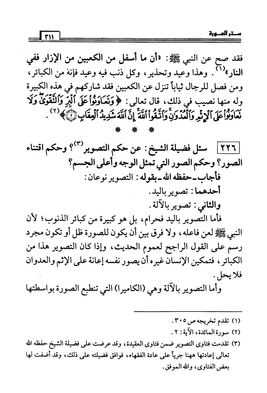 (¬2) تقدمت فتاوى التصوير ضمن فتاوى العقيدة، وقد عرضت على فضيلة الشيخ حفظه الله تعالى إعادتها ههنا جرياً على عادة الفقهاء، فوافق فضيلته على ذلك، وقد أضيفت بعض الفتاوى، والله والموفق