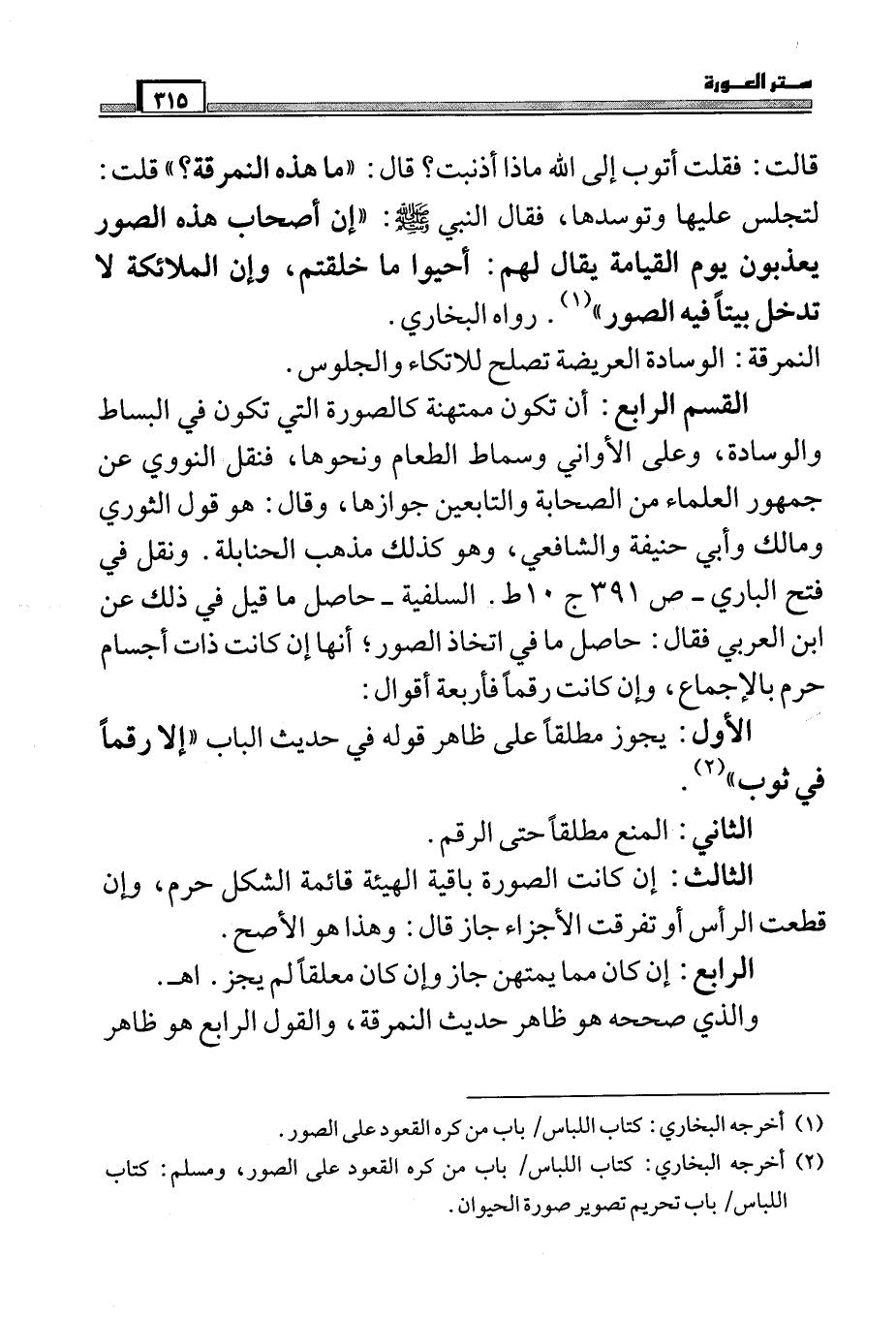 (¬2) أخرجه البخاري: كتاب اللباس / باب من كره القعود على الصور، ومسلم: كتاب اللباس / باب تحريم تصوير صورة الحيوان.