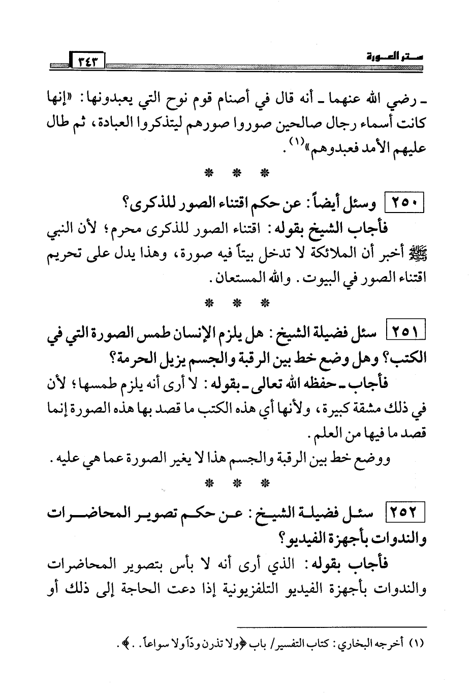 سئل فضيلة الشيخ: هل يلزم طمس الصورة التي في الكتب؟ وهل وضع خط بين الرقبة والجسم يزيل الحرمة؟