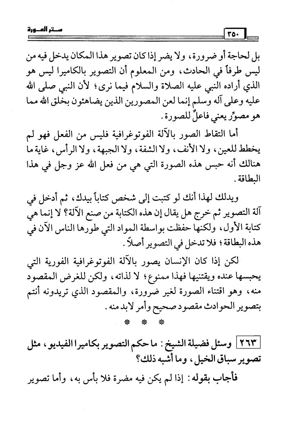 263 وسئل فضيلة الشيخ: ما حكم التصوير بكاميرا الفيديو، مثل تصوير سباق الخيل، وما أشبه ذلك؟