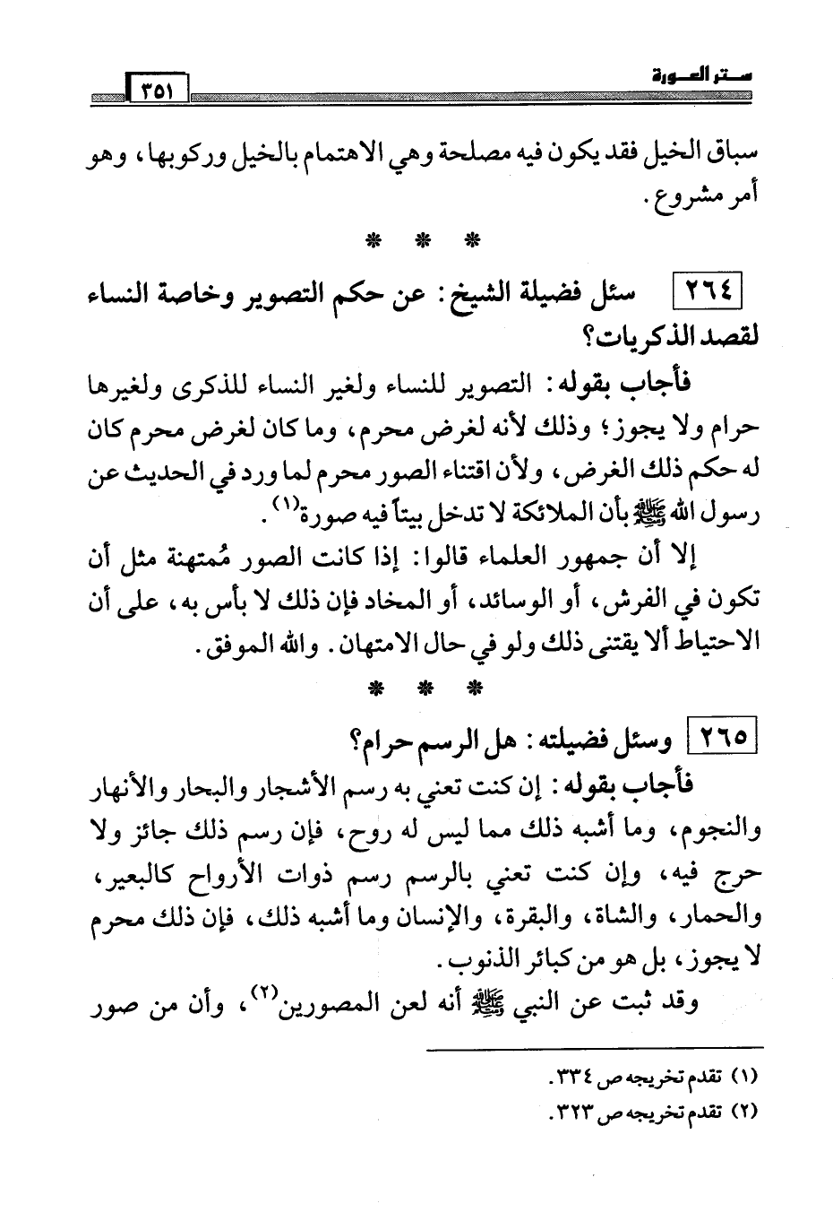 264 سئل فضيلة الشيخ: عن حكم التصوير وخاصة النساء لقصد الذكريات؟