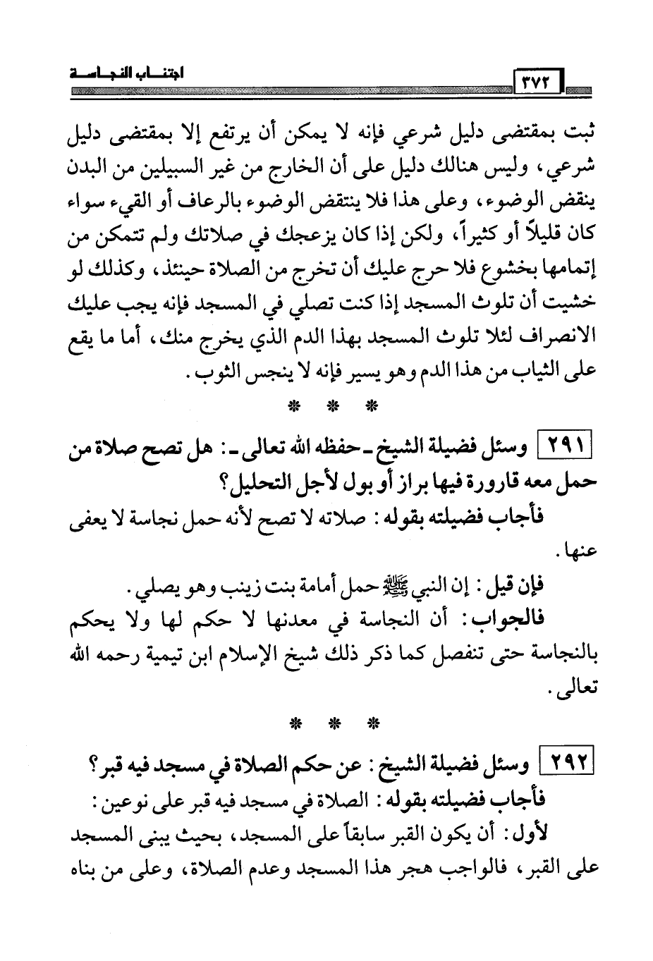 وسئل فضيلة الشيخ: عن حكم الصلاة في مسجد فيه قبر؟