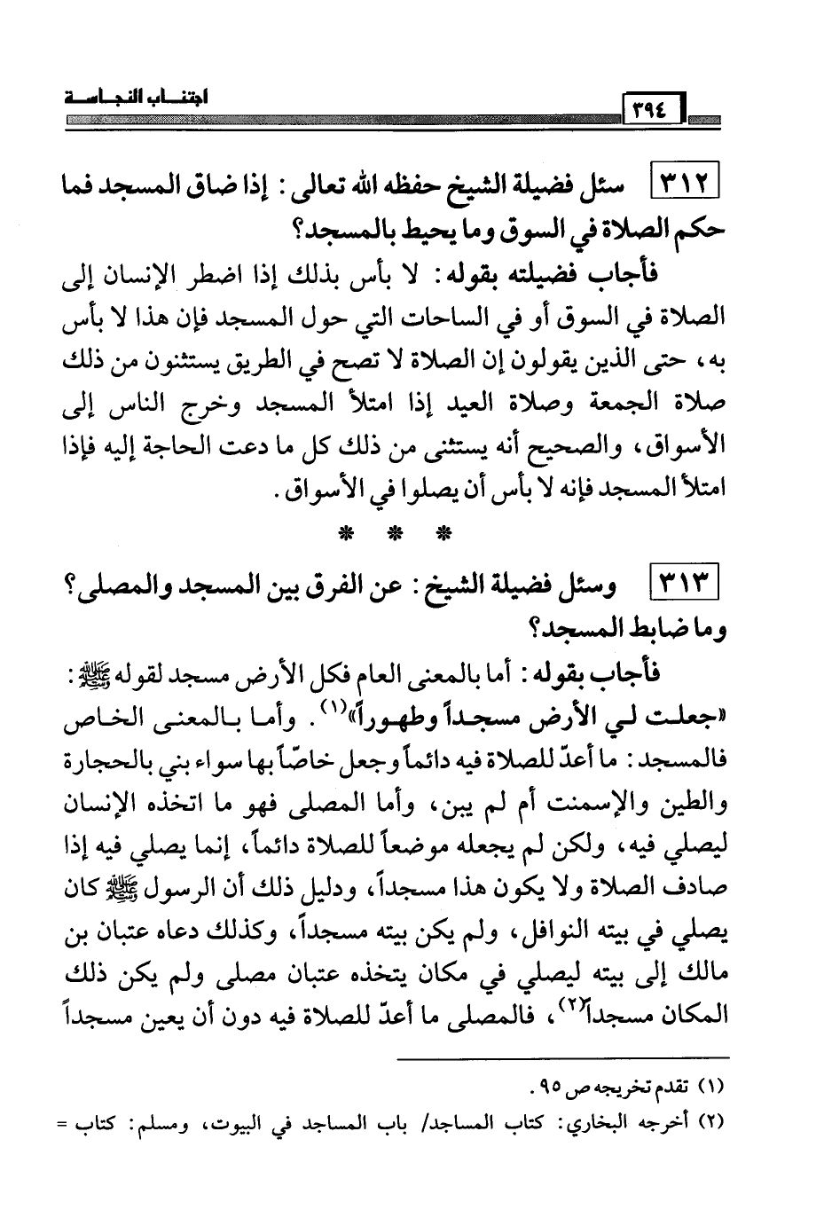 313 وسئل فضيلة الشيخ: عن الفرق بين المسجد والمصلي؟ وما ضابط المسجد؟