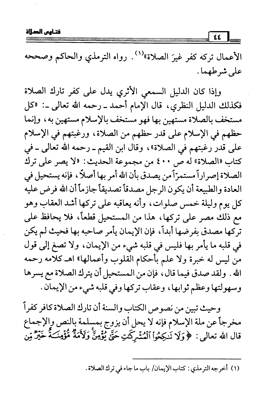 (¬1) أخرجه الترمذي: كتاب الإيمان/باب ما جاء في ترك الصلاة.