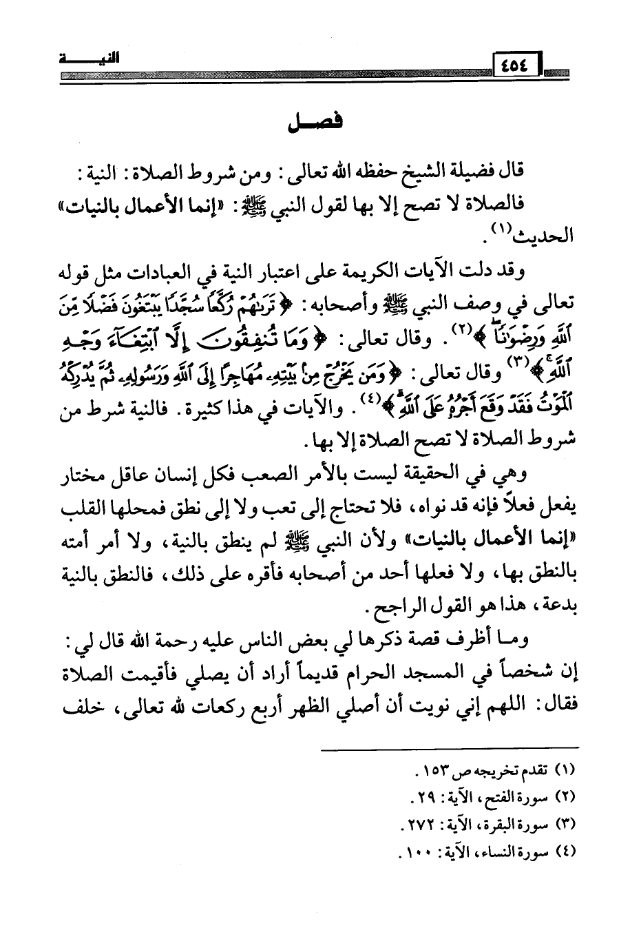 فأجاب بقوله: الصحيح أنه لا يضر اختلاف نية الإمام والمأموم، وأنه يجوز للإنسان المفترض أن يصلي خلف الإنسان المتنفل، كما كان معاذ بن جبل يفعل ذلك في عهد النبي صَلَّى اللَّهُ عَلَيْهِ وَسَلَّمَ فإنه كان يصلي مع النبي صَلَّى اللَّهُ عَلَيْهِ وَسَلَّمَ صلاة العشاء، ثم يرجع إلى قومه فيصلي بهم تلك الصلاة (¬1) ، وهي له نافلة، ولهم فريضة، فإذا دخل إنسان المسجد وأنت تصلي فريضة، أو نافلة وقام معك لتصليا جماعة فلا حرج، وصلاتكما صحيحة فيدخل معك ويصلي ما يدركه معك، وبعد انتهاء صلاتك تقوم فيقضي ما بقي عليه إن كان فاته شيء سواء كنت تصلي نافلة أو فريضة.