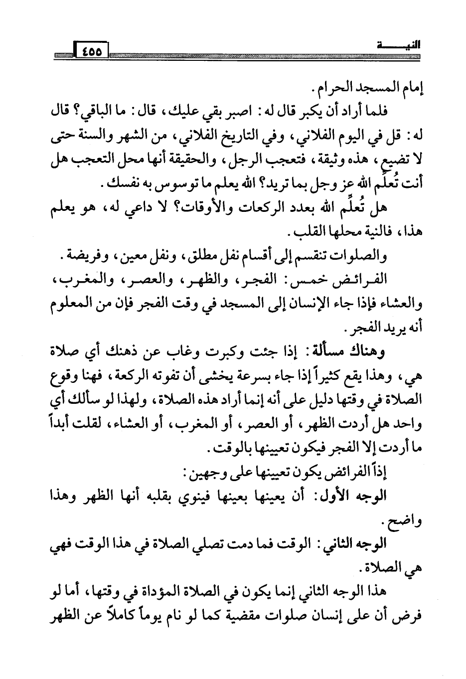 قال فضيلة الشيخ حفظه الله تعالى: ومن شروط الصلاة: النية: