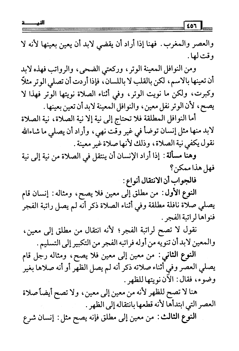 وهناك مسألة: إذا جئت وكبرت وغاب عن ذهنك أي صلاة هي، وهذا يقع كثيراً إذا جاء بسرعة يخشى أن تفوته الركعة، فهنا وقوع الصلاة في وقتها دليل على أنه إنما أراد هذه الصلاة، ولهذا لو سألك أي واحد هل أردت الظهر، أو العصر، أو المغرب، أو العشاء، لقلت أبداً ما أردت إلا الفجر فيكون تعيينها بالوقت.