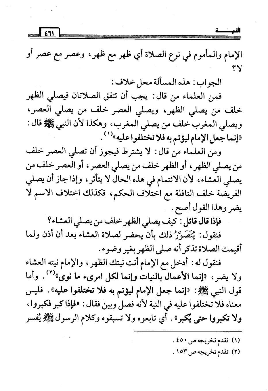 3 - نافلة خلف فريضة جائزة قلولاً واحداً.