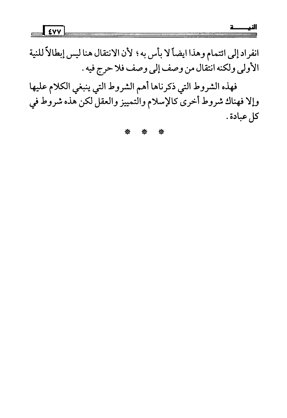 فهذه الشروط التي ذكرناها أهم الشروط التي ينبغي الكلام عليها وإلا فهناك شروط أخرى كالإسلام والتمييز والعقل لكن هذه شروط في كل عبادة.