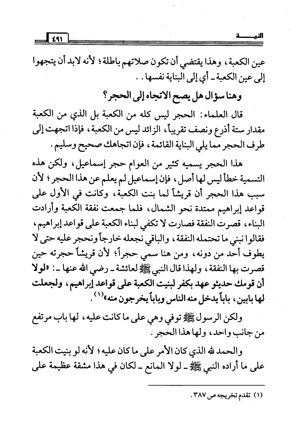 والحمد لله الذي كان الأمر على ما كان عليه، لأنه لو بنيت الكعبة على ما أراده النبي صَلَّى اللَّهُ عَلَيْهِ وَسَلَّمَ – لولا المانع – لكان في هذا مشقة عظيمة على