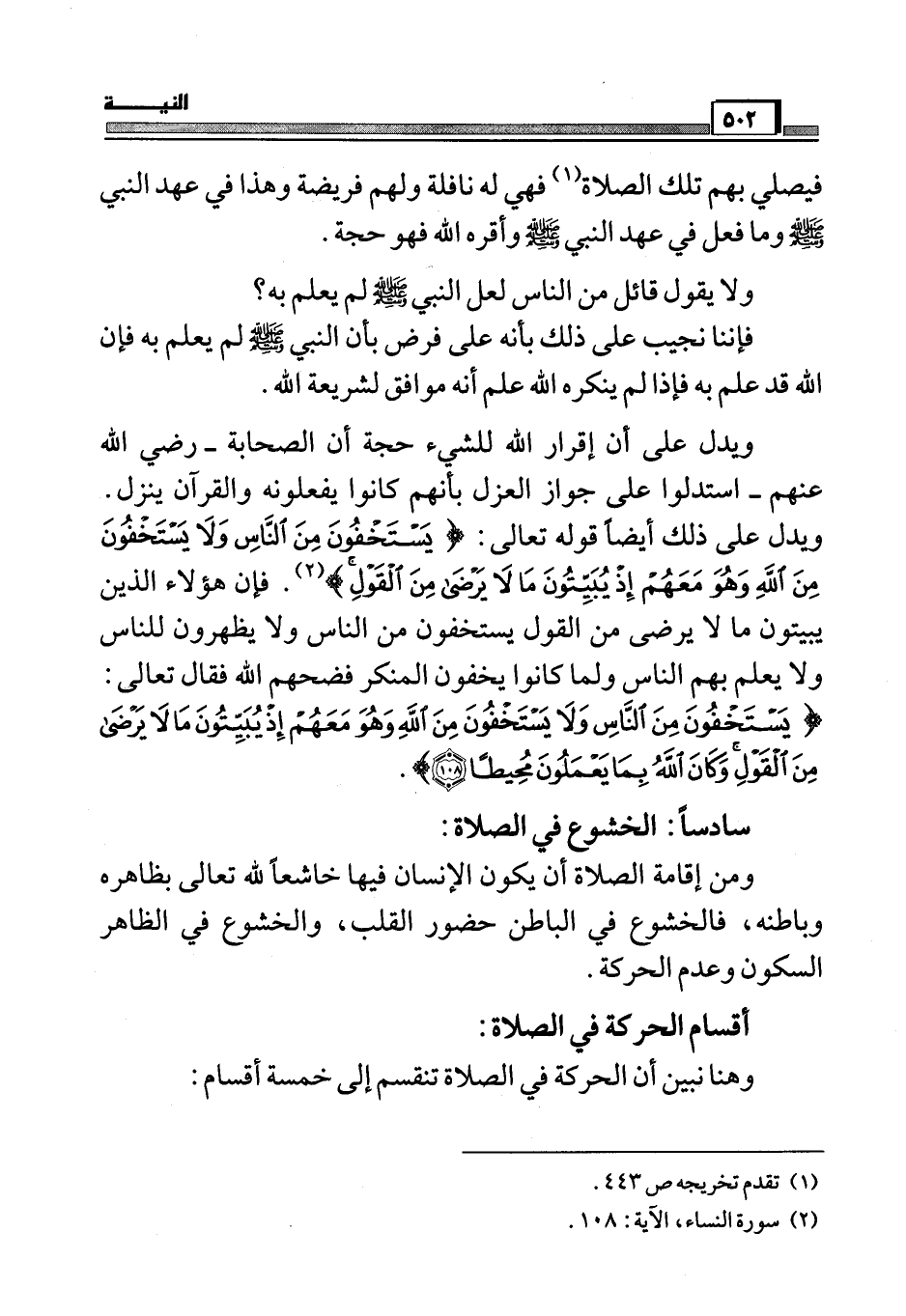 ودل على أن إقرار الله للشئ حجة أن الصحابة – رضى الله عنهم – استدلوا على جواز العزل بأنهم كانوا يفعلونه والقرآن ينزل. ويدل على ذلك أيضاً قوله تعالى: (يَسْتَخْفُونَ مِنَ النَّاسِ وَلا يَسْتَخْفُونَ مِنَ اللَّهِ وَهُوَ مَعَهُمْ إِذْ يُبَيِّتُونَ مَا لا يَرْضَى مِنَ الْقَوْلِ) (¬2) . فإن هؤلاء الذين يبيتون ما لا يرضى من القول يستخفون من الناس ولا يظهرون للناس ولا يعلم بهم الناس ولما كانوا يخفون المنكر فضحهم الله فقال تعالى (يَسْتَخْفُونَ مِنَ النَّاسِ وَلا يَسْتَخْفُونَ مِنَ اللَّهِ وَهُوَ مَعَهُمْ إِذْ يُبَيِّتُونَ مَا لا يَرْضَى مِنَ الْقَوْلِ وَكَانَ اللَّهُ بِمَا يَعْمَلُونَ مُحِيطاً 108) .